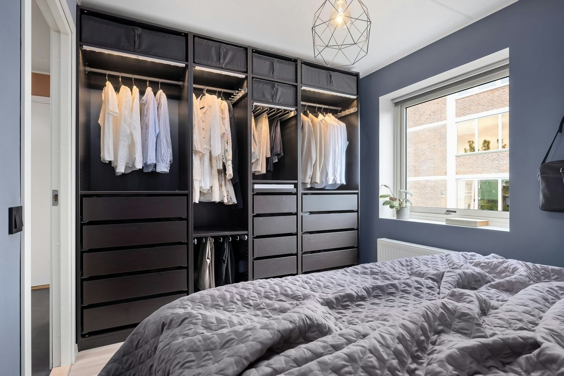 - Översta zonen – perfekt för saker du inte använder dagligen, som resväskor, säsongsjackor eller extra sängkläder. Använd gärna lådor eller korgar med lock för ett prydligt intryck.