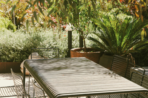 Det kvadratiska bordet passar för många typer av utomhusmiljöer – från caféområden och matplatser till avslappnade loungezoner – och kan kombineras med andra möbler i WEEK-END-serien för ett enhetligt uttryck.